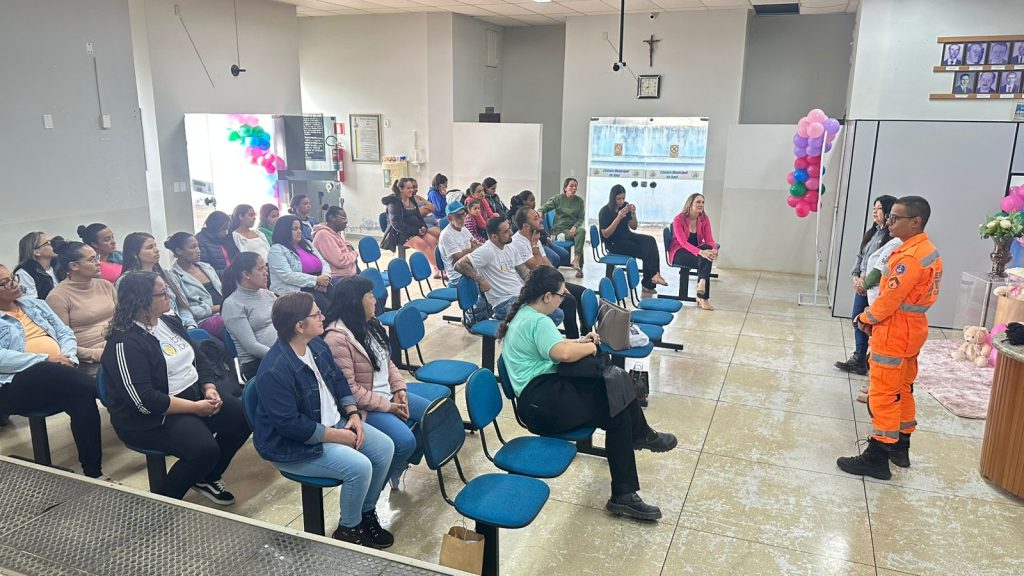Além da palestra sobre primeiros socorros, a manhã contou com uma conversa sobre a importância da imunização na gestação, no bebê e na infância, conduzida pela enfermeira Eliana, da equipe da saúde municipal.